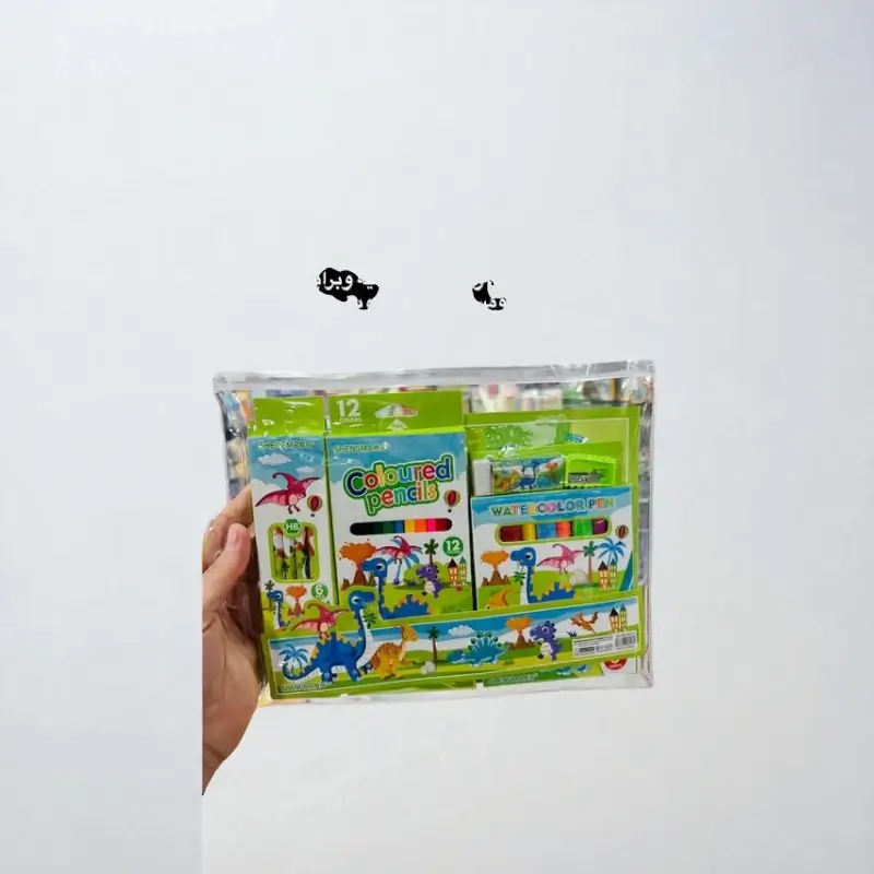 مجموعة أقلام رصاص وشينية ومائية وبراية ومساحة ودفتر تلوين