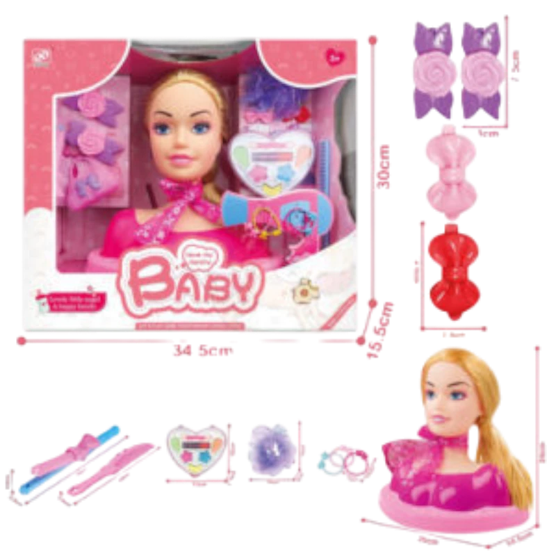 دمية مع مجموعة مكياج وإكسسوارات لتزيين وجه وشعر الدمية، تتيح للطفلة اللعب والتجربة بأسلوب ممتع وآمن. تساعد على تنمية الإبداع والذوق الفني وتوفر ساعات من التسلية والمرح