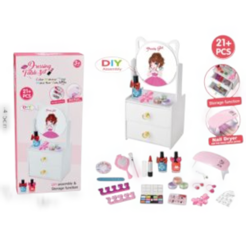 تسريحة مكياج للأطفال مصنوعة من الخشب مزودة بمرآة، مع مكياج وأدوات تجميل للعب آمن وممتع، تساعد طفلتك على تقليد الكبار وتنمية خيالها