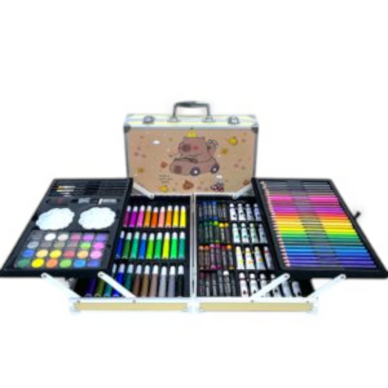 حقيبة مصنوعة من الالمنيوم الوان خشبية الوان شينية الوان شمعية الوان مائية الوان زيتية فرشاة تلوين اقلام رصاص قاعدة الوان عدد 2 مساحة براية