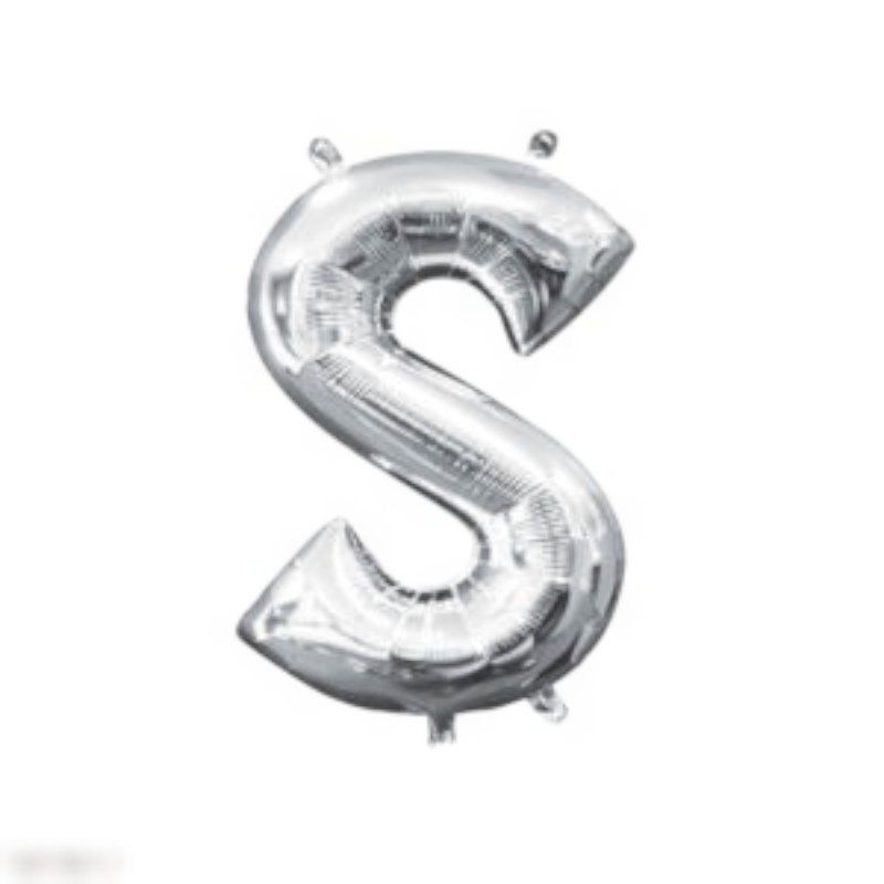 حرف S هيليوم لون فضي مقاس كبير مملوء بغاز الهيليوم